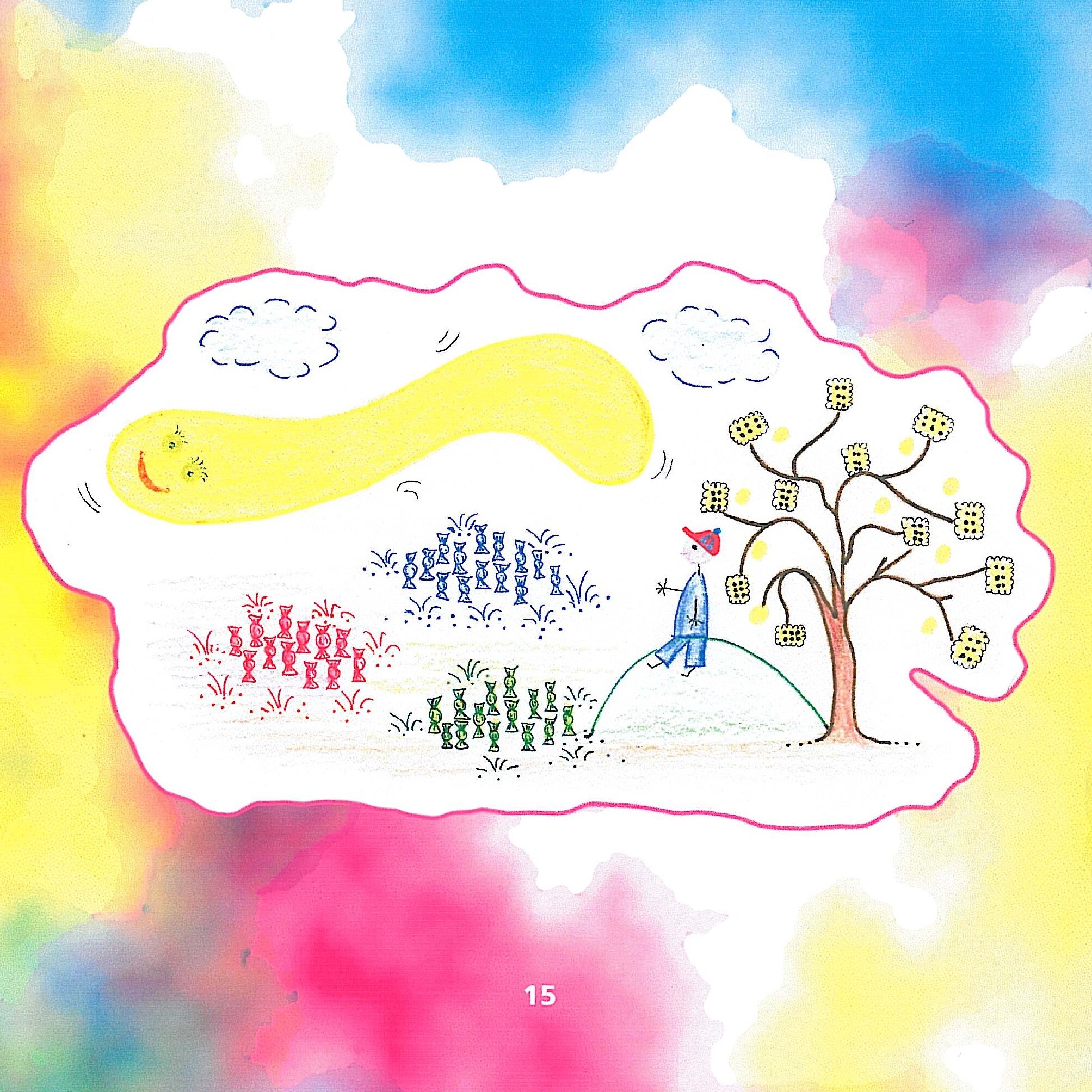 Ilustracje do bajki o Kacperku rysowałam w 2000 roku dla wydawnictwa "Bellona". Rysunki miały być proste, słodkie i przyjazne. Kacperek miał różne przygody: chodził po bagnie, spadł z pieńka, na którym były czerwone robaczki, jadł ciasteczka na ciasteczkowym polu i spotkał Truposzczaka.