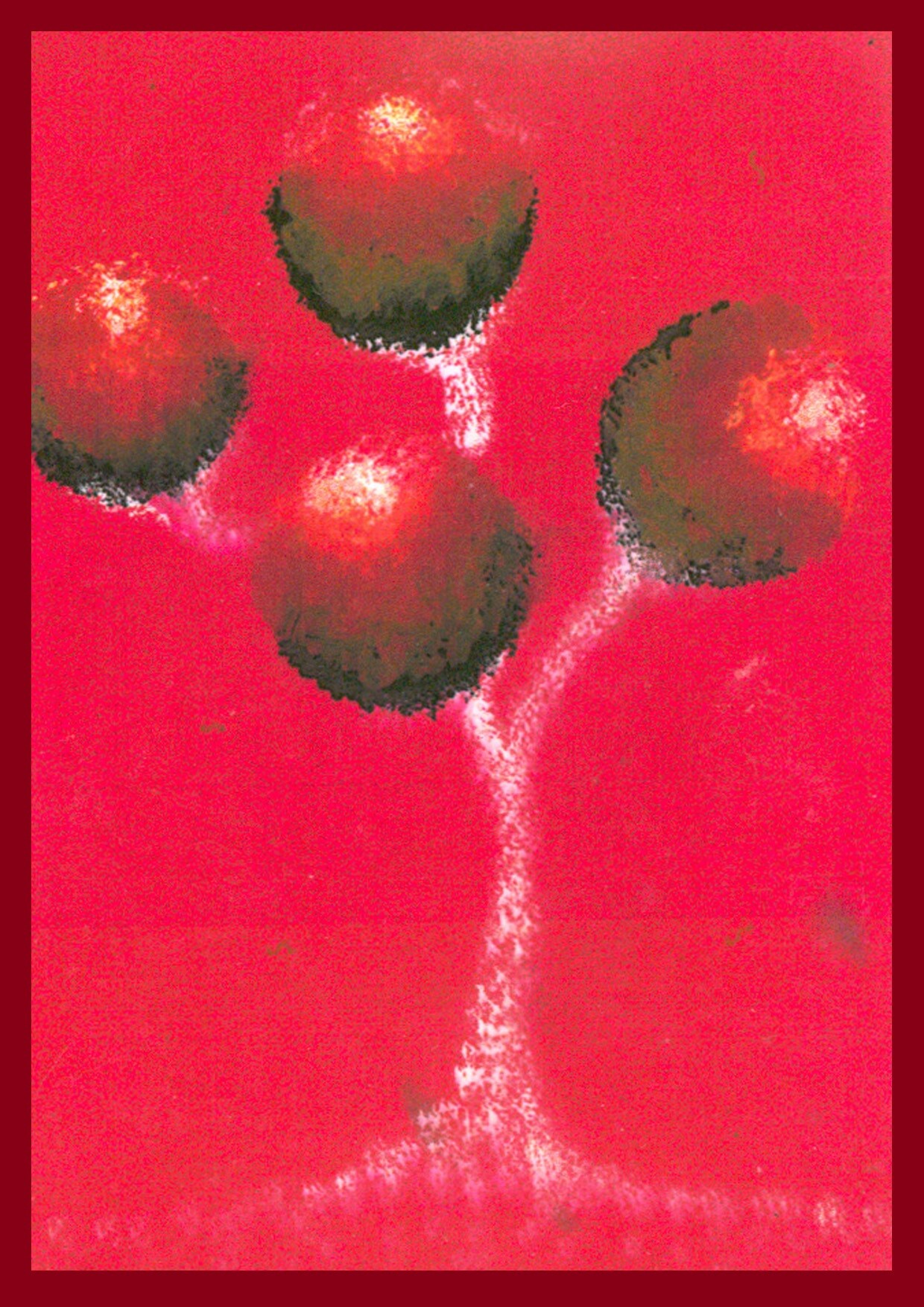 Malowałam własne kalendarze. To jest kalendarz "Kosmiczne kwiaty" z 2000 roku malowany temperami. Widziałam te kwiaty w formie pulsującego, trójwymiarowego światła 3D. Nie potrafię ich namalować w tak piękny sposób, jak w moich widzeniach.