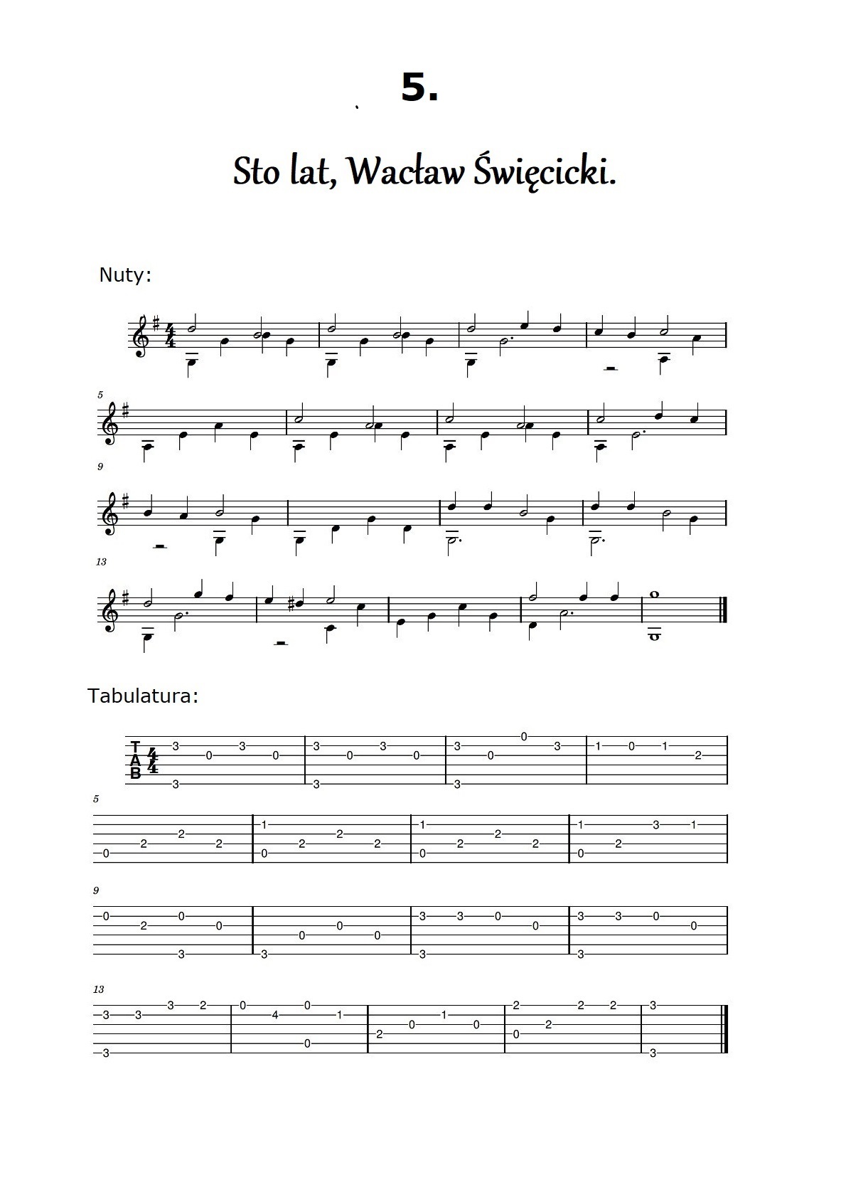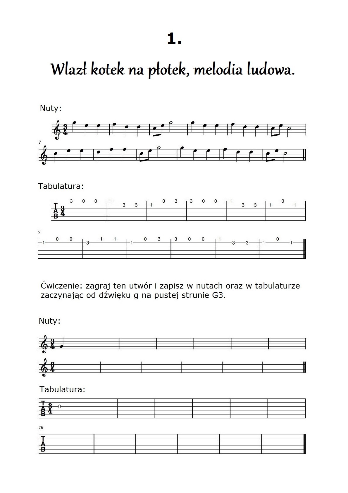 Uczę osoby zupełnie początkujące. Dzieci oraz Ci, którzy to lubią, dostają oceny. W trakcie nauki zwracam szczególną uwagę na to, aby granie na gitarze było codzienną przyjemnością. Regularne ćwiczenia w domu to podstawa sukcesu. Pracę domową spisuję w punktach w zeszycie. Od początku zachęcam do założenia sobie śpiewnika.