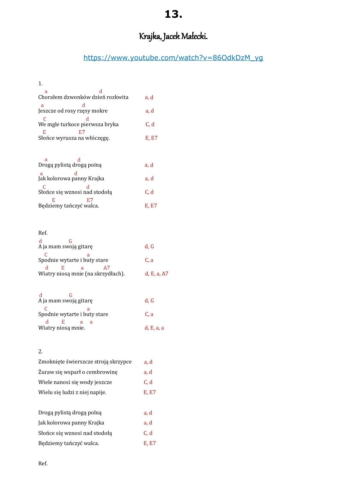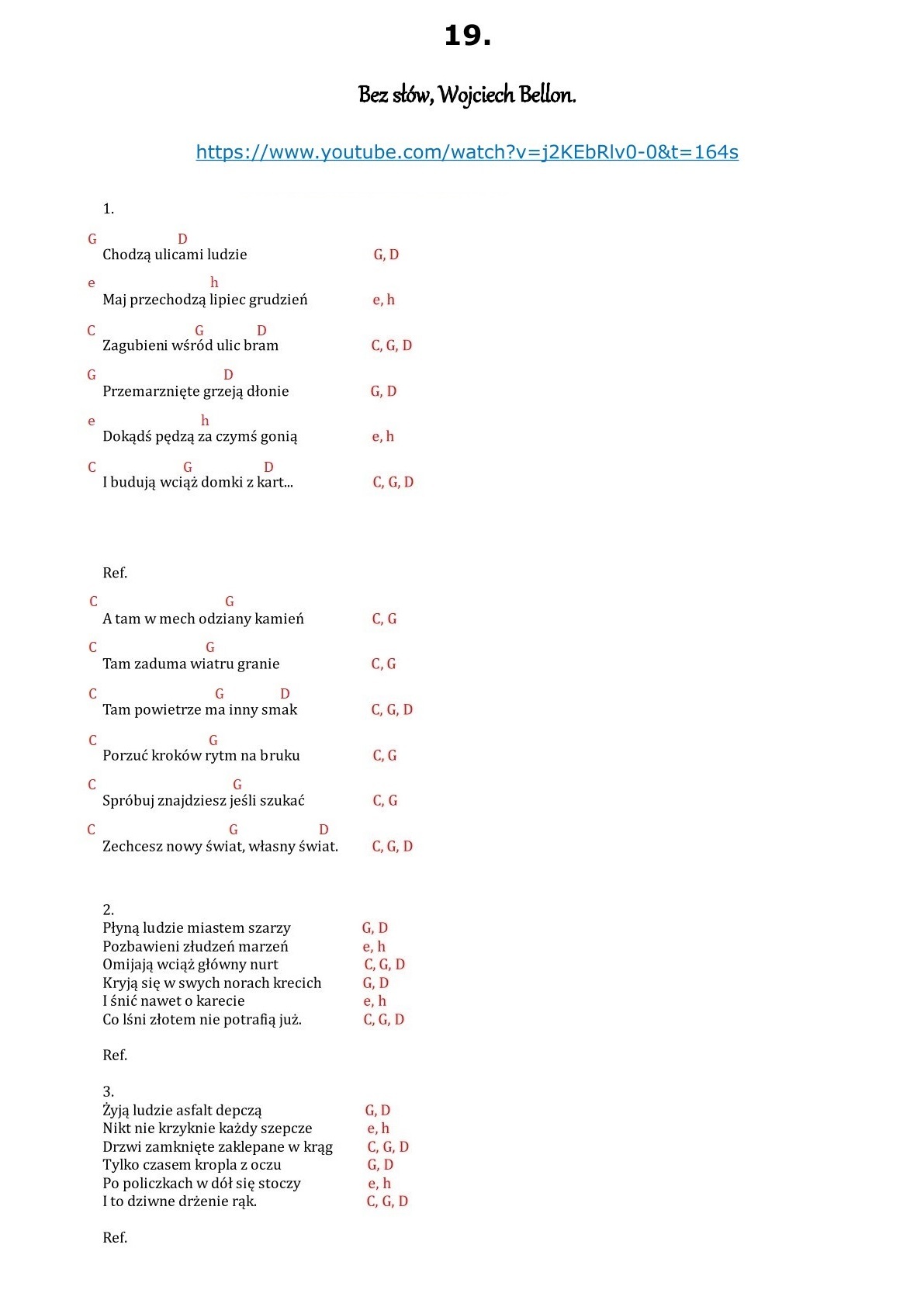 Znajdziecie Państwo na tej stronie materiały do nauki ułożone według stopnia trudności. Uczeń powinien najpierw sam ocenić, czy taki program mu odpowiada. Proszę przed pierwszą lekcją wybrać te utwory, które się najbardziej podobają i spisać tytuły własnych ulubionych piosenek.